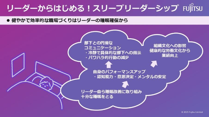 具体的には富士通の「イノベーションによって社会に信頼をもたらし世界をより持続可能にしていくこと」というパーパスの実現のために、サステナビリティ経営の一つとして、健康経営の取り組みをより良いものにして、社員が健康的に働ける会社となるよう環境を整備しています。