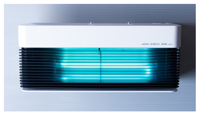 <みんなエアーで提供する分析・対策機器について> 3種類の機器を設置し、空気の見える化と空気環境の改善対策を行います。 ・設置機器①:「エアロシールド」(紫外線照射装置)6台設置予定 「エアロシールド」は紫外線の中で最も除菌効果が高いとされている「UV-C」を空間上部に水平照射することで、人がいる空間でも安全に浮遊菌やウイルスを減少させることができます。第三者研究機関の実証試験により「実空間における浮遊菌が89.6%減少」することが証明されおり、今回はライブ中も継続して紫外線照射を行うことで会場内の空気を衛生的に保ちます。