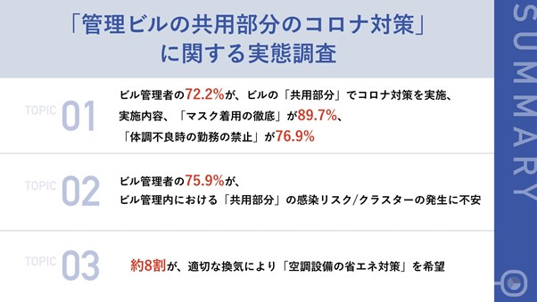 【ビル管理者108人アンケート!!】75.9%が自分の管理しているビルの 「共用部分」でのクラスター発生を不安視