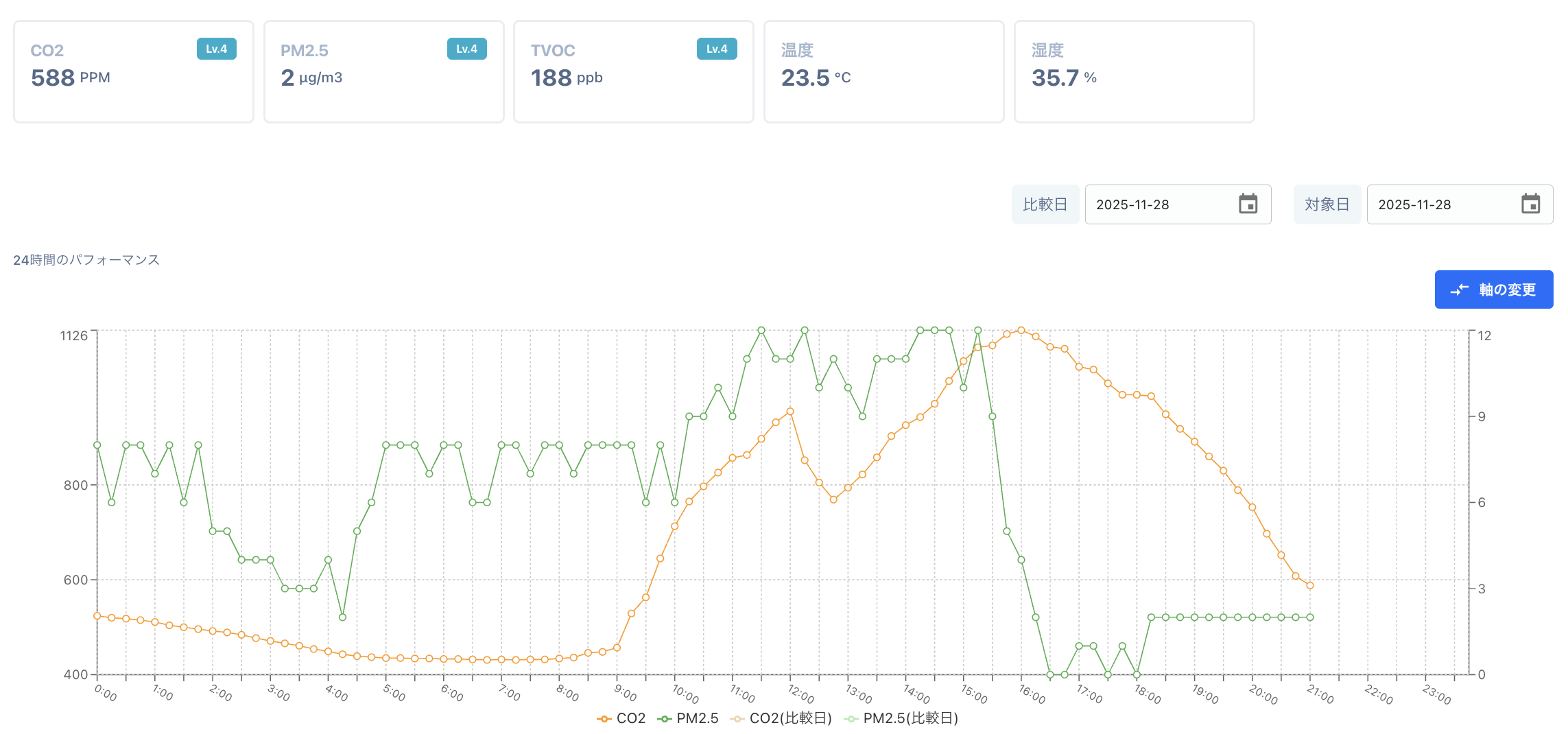 【 24 時間の環境パフォーマンスをグラフで表示 】