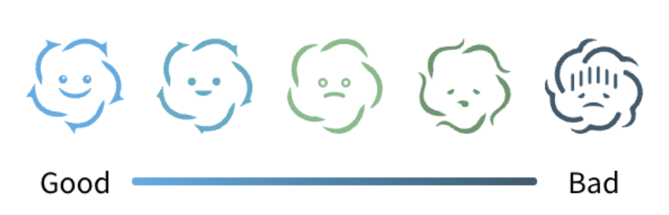 【 5 段階の「空気ちゃん」アイコンで室内環境の安心度を分かりやすく表示 】